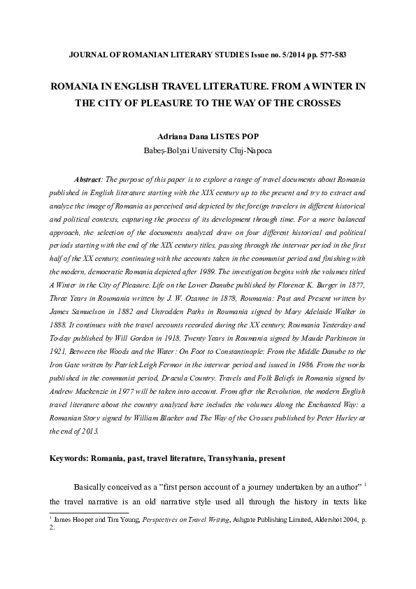Doc Romania In English Travel Literature From A Winter In The City Of Pleasure To The Way Of The Crosses Adriana Dana D P Listes Pop Academia Edu