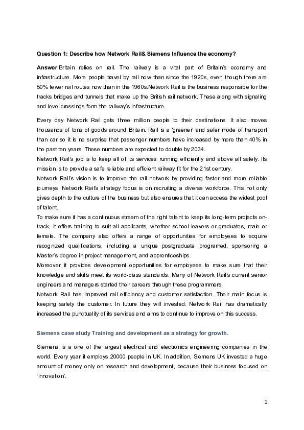 Doc Question 1 Describe How Network Rail Siemens Influence The Economy Shadman Avro Academia Edu